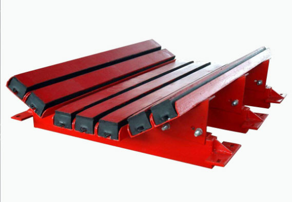 并采用特殊的UHMW高分子聚乙烯表面,使輸送帶與緩沖條之間的摩擦系數(shù)降到低,且耐磨性好。緩沖床的使用保證了輸送帶的面與面的接觸,受力均勻,有效防止了由于托輥斷裂、脫落造成的皮帶縱向撕裂,同時大大降低了皮帶被銳器或尖銳物料穿透后縱向撕裂的概率。