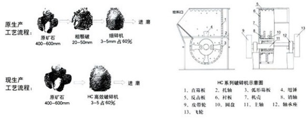 HC系列節(jié)能破碎機(jī)是我公司工程技術(shù)人員經(jīng)過反復(fù)實(shí)踐與探索研制出的一種新型產(chǎn)品,它廣泛適用于石料廠、人工砂和水泥生料原料破碎,尤其適宜對(duì)石灰石、白云石、頁巖、石膏礦、熒石、煤矸石等中硬脆性物料,進(jìn)料粒度大、出料粒度小且均勻、并且可根據(jù)不同需要選擇和預(yù)定篩板,是礦山、水泥、建材企業(yè)比較理想的破碎設(shè)備。改寫了水泥生料設(shè)備工藝并減少1/3的設(shè)備投資和節(jié)省1/2的電耗,省去了大量的維修費(fèi)用。