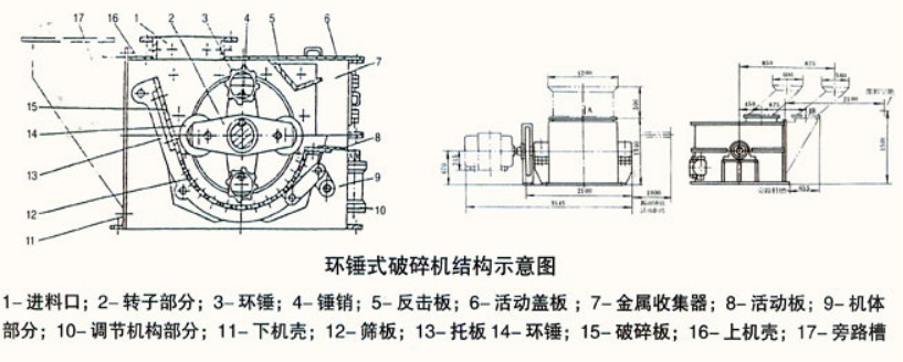 PCH系列環(huán)錘式破碎機(jī)是一種帶有環(huán)錘的沖擊轉(zhuǎn)子式破碎機(jī),物料進(jìn)入破碎機(jī)后,首先受到隨轉(zhuǎn)子高速旋轉(zhuǎn)的環(huán)錘的沖擊作用而破碎,被破碎的物料同時(shí)從環(huán)錘處獲得動(dòng)能,高速度地沖向破碎板。然后落到篩板上,受到環(huán)錘的剪切、擠壓、研磨以及物料與物料之間的相互作用進(jìn)一步破碎,并透過(guò)篩孔排出。不能破碎的雜物則進(jìn)入金屬收集器,定期清除。