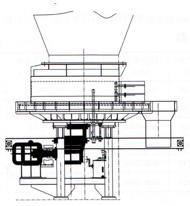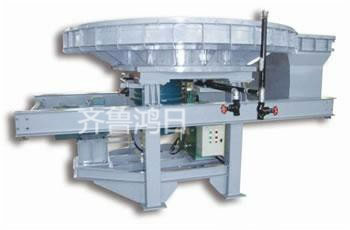 該機(jī)主要由圓盤盤面、料套、刮料板、擋料板、手動閘門裝置,主支架、料罩、回轉(zhuǎn)支承、硬齒面減速器、電機(jī)、襯板等組成。給料圓盤隨料倉的壓力來自驅(qū)動裝置的動力,通過內(nèi)齒輪副的作用使圓盤作回轉(zhuǎn)運動,從而使料倉的物料不斷排出。內(nèi)齒輪副加工簡單,旋轉(zhuǎn)體下部設(shè)有承受料倉壓力的******回轉(zhuǎn)支承。