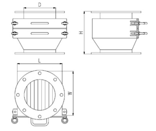 注:1. “D"表示雙層磁格柵;2.定購(gòu)時(shí)需提供進(jìn)岀料口形式、尺寸;管道壓力;工作溫度;安裝高度限值;磁場(chǎng)強(qiáng)度;物料特性,物料名稱,顆粒度,流動(dòng)性;磁格柵層數(shù)等參數(shù)。 |