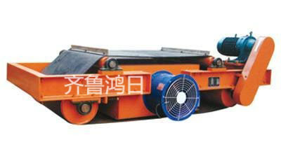 RCDC系列風冷懸掛式電磁除鐵器的基礎上增加了驅動電機、滾筒、帶刮板的卸鐵膠帶等組成的卸鐵機構。在工作過程中卸鐵機構自動將卸鐵皮帶上吸附的鐵磁性物質送到除鐵器以外的集鐵箱內,無需停電人工清理,實現(xiàn)了除鐵自動化。
